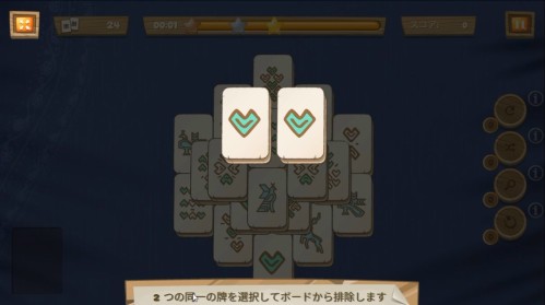 スター後、積み重ねられて麻雀牌から選択できる同じ絵柄を選択して消していきます