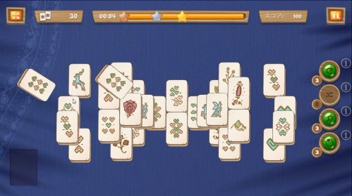 時間の経過とともに画面上部のゲージが減っていきます。できる限り早くすべての牌を消して星の獲得を目指します