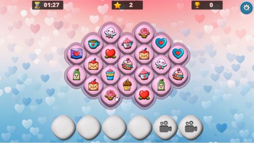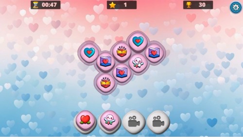 ゲームは、ハートや花、ケーキなどの絵柄を選択して画面下のスロットに移動し、同じ絵柄を3つ選択して消してレベルをクリアしていくパズルゲームです