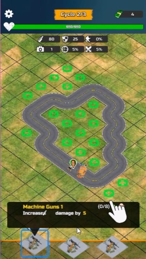 ゾンビのいる街を周回してゾンビを倒して新たな武器や威力アップなどのパネルを設置してキャラクターをアップグレードしていくアクション・シミュレーションゲームです