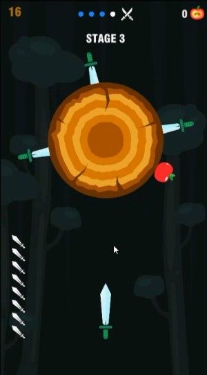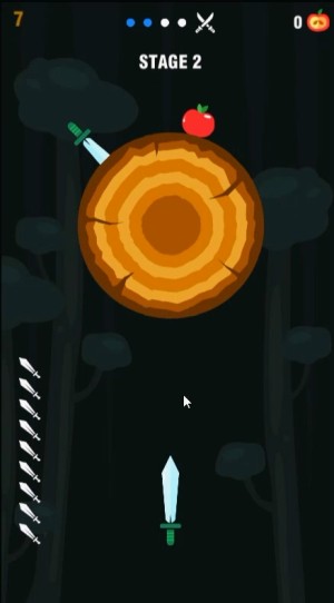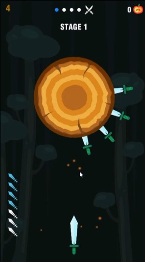 ゲームは、回転する丸太に画面をクリックしてナイフを投げて、刺さったナイフにあたらないように丸太にあてて丸太を破壊してステージをクリアしていくアクションゲームです