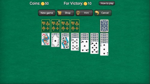 開始後、通常のソリティアのように、画面上部の4つのスロットにエースの1から順番にトランプのカードを重ねていき、すべてのカードを重ねてクリアを目指します