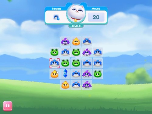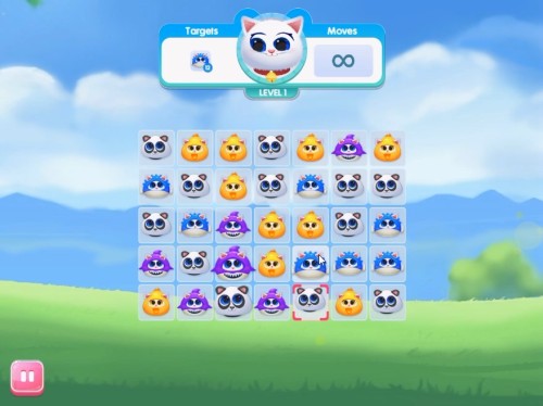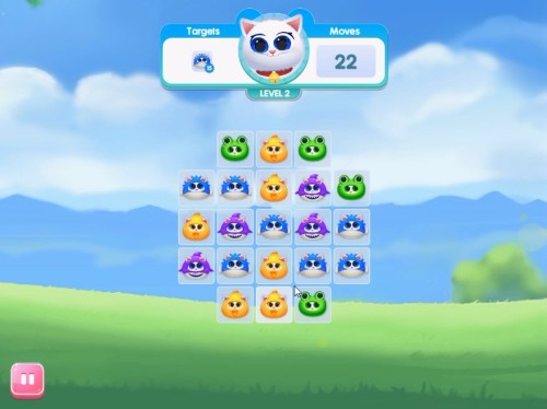 ゲームは、赤・青・黄色などの動物の絵柄をスライドして縦横3つ以上ならべて消し各レベルのクリア条件を満たしてマップの各レベルをクリアしていくパズルゲームです