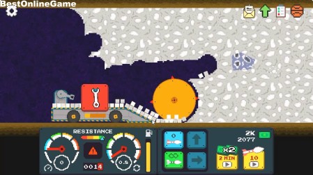 ゲームは、円形の巨大な掘削装置を進ませて壁を掘り進みミサイルと装置で壁の中のアイテムなどを見つけながらお金を貯めて装置をアップグレードしていく掘削シミュレーションゲームです